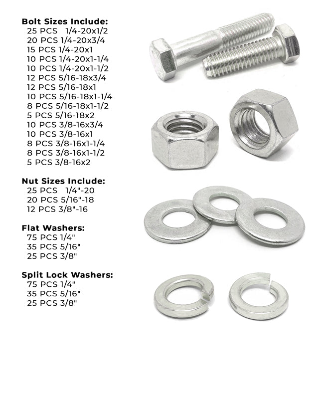 Part Number: Assortment Kit #276 573 Pieces - Coarse Thread Bolt Information: Nut Information: Washers Information: