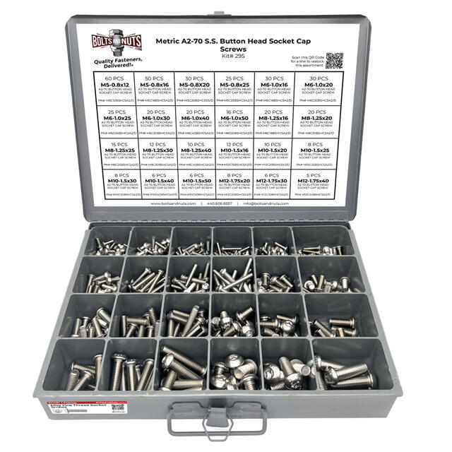 Metric A2-70 Allen Button Head Socket Cap Screws Bolts Stainless Steel Assortment - 453 PCS