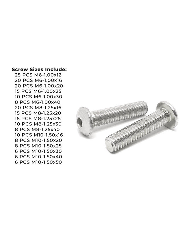 Metric A2-70 Allen Button Head Socket Cap Screws Bolts Stainless Steel Assortment - 211 PCS