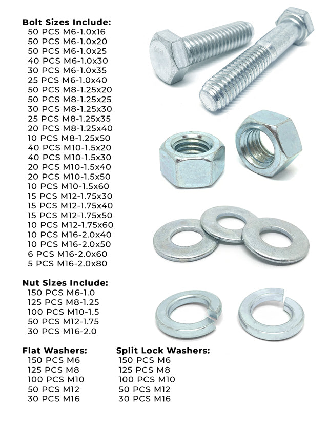 Metric Class 10.9 Coarse Hex Cap Screws, Hex Nuts, Flat & Lock Washers - 2012 PCS