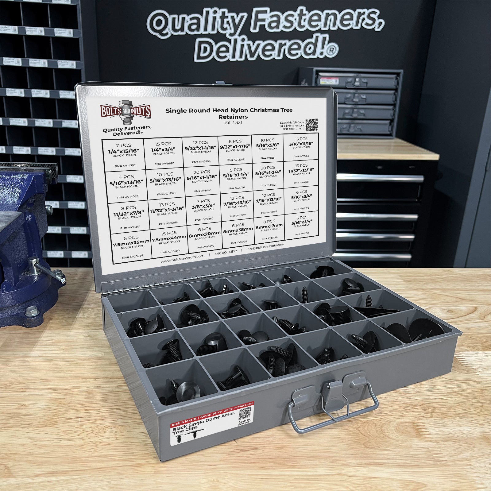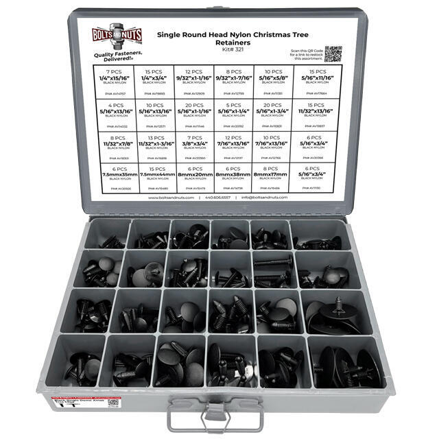 Single Round Head Black Nylon Christmas Tree Retainer Assortment - 245 PCS