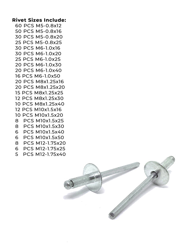 Dome Head Blind Pop Rivets Alum/Alum Mandrel Assortment - 1001 PCS