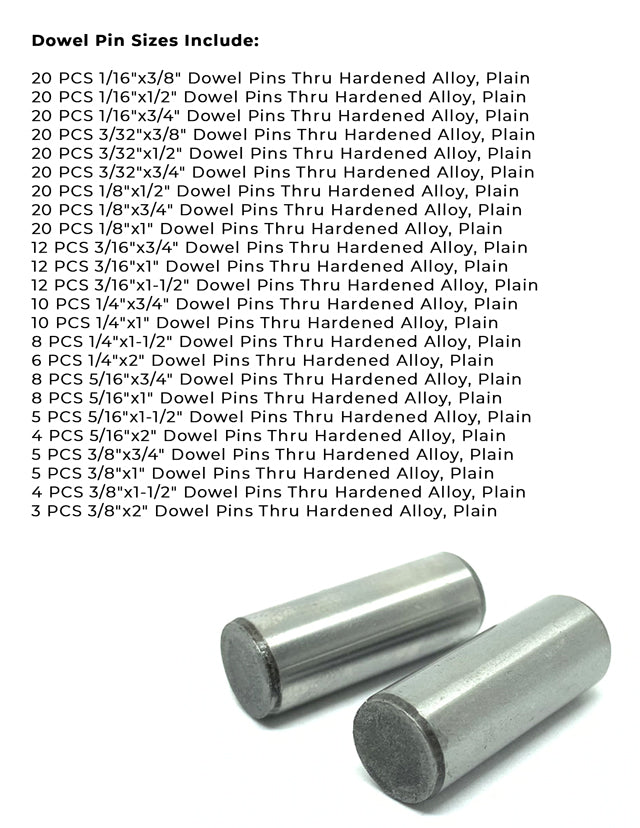 Plain Finish Hardened Alloy Dowel Pins Assortment - 293 PCS