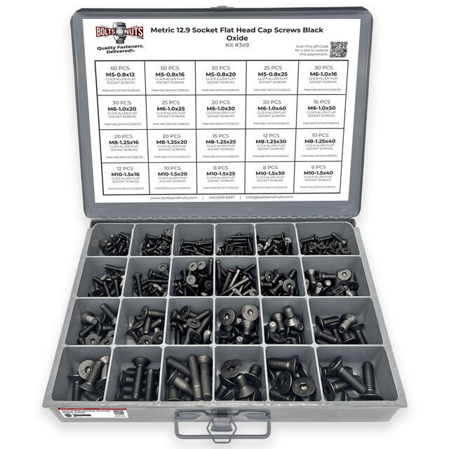 Metric Class 12.9 Flat Socket Screws Black Oxide - 453 PCS