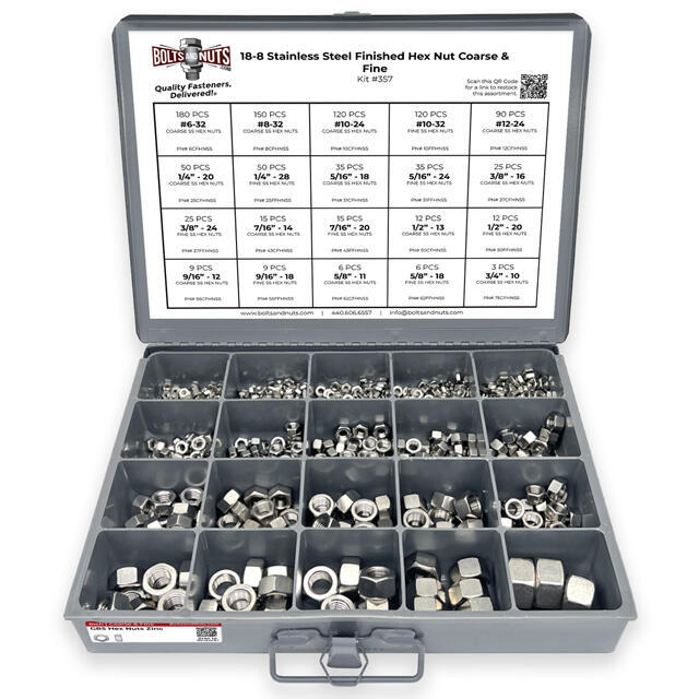 Part Number: Assortment Kit #357 968 Pieces - Coarse & Fine Thread Nut Information: