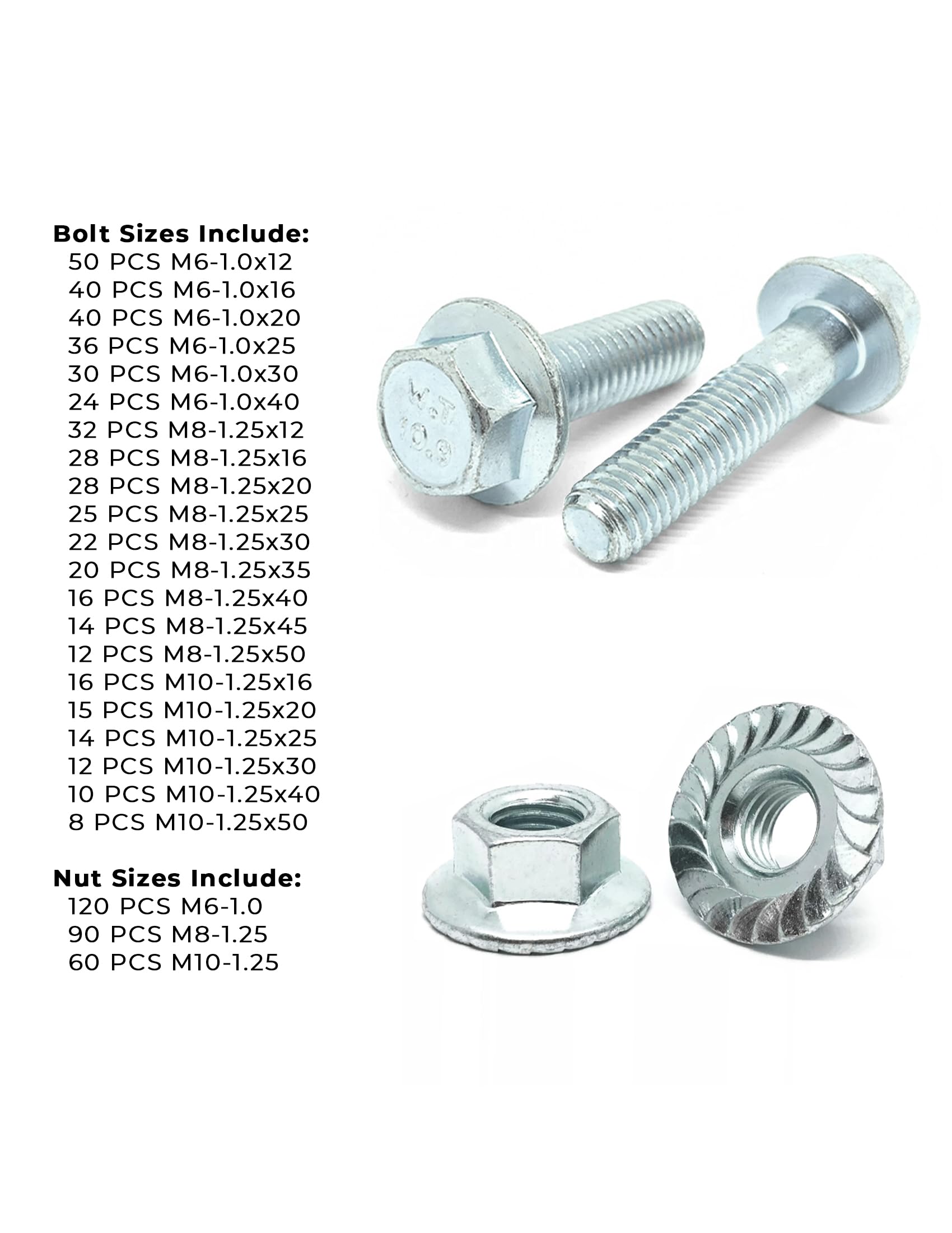 Metric Class 10.9 JIS Hex Flange Frame Bolts & Serrated Nuts Assortment M6-M10 762 PCS
