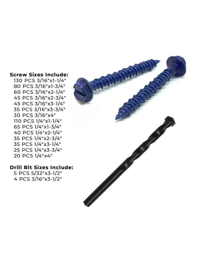 Slotted Hex Washer Head Concrete Screws Assortment - 765 PCS
