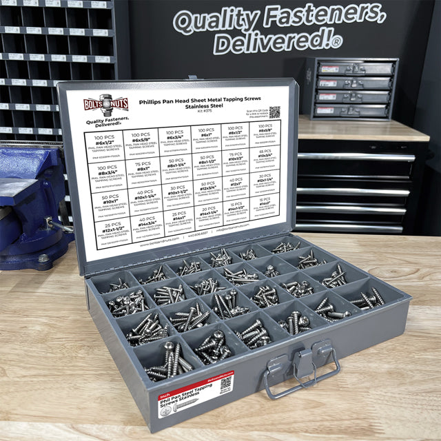 Stainless Phillips Pan Head Sheet Metal Self Tapping Screws Assortment - 1396 PCS