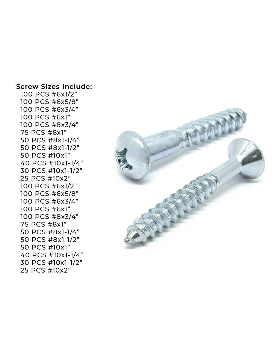 Phillips Round & Flat Head Wood Screws Zinc Assortment - 1641 PCS