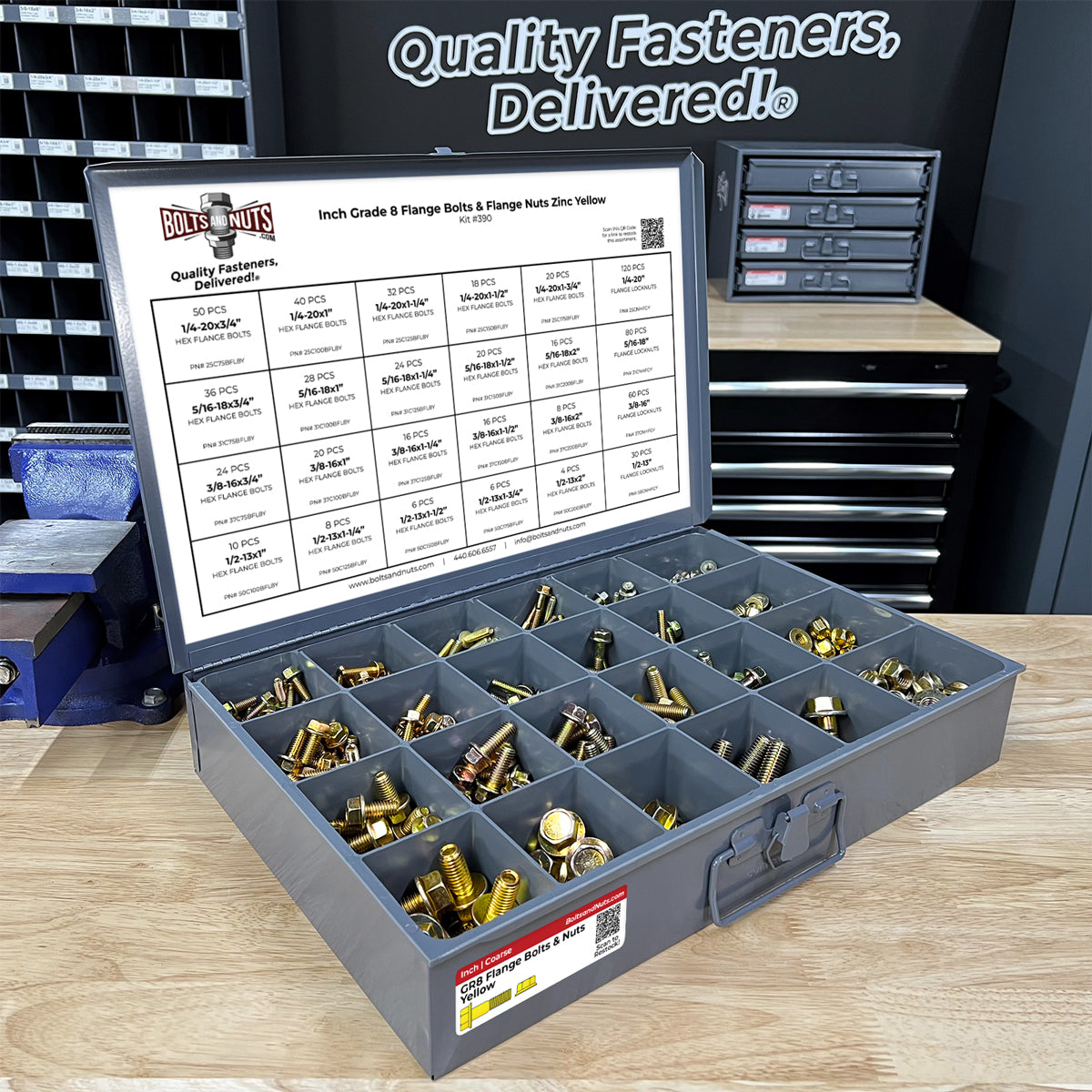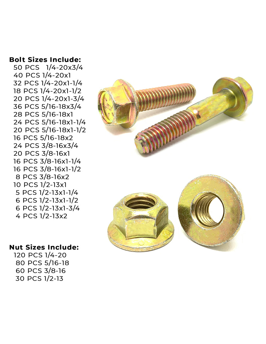 Inch Grade 8 Hex Flange Bolts & Flange Lock Nuts Zinc Yellow Assortment - 693PCS
