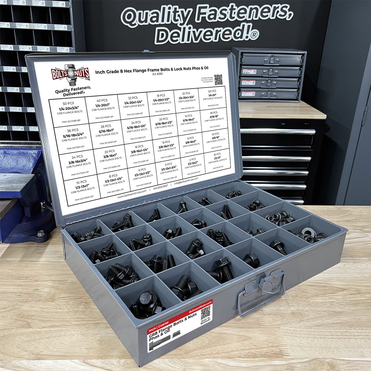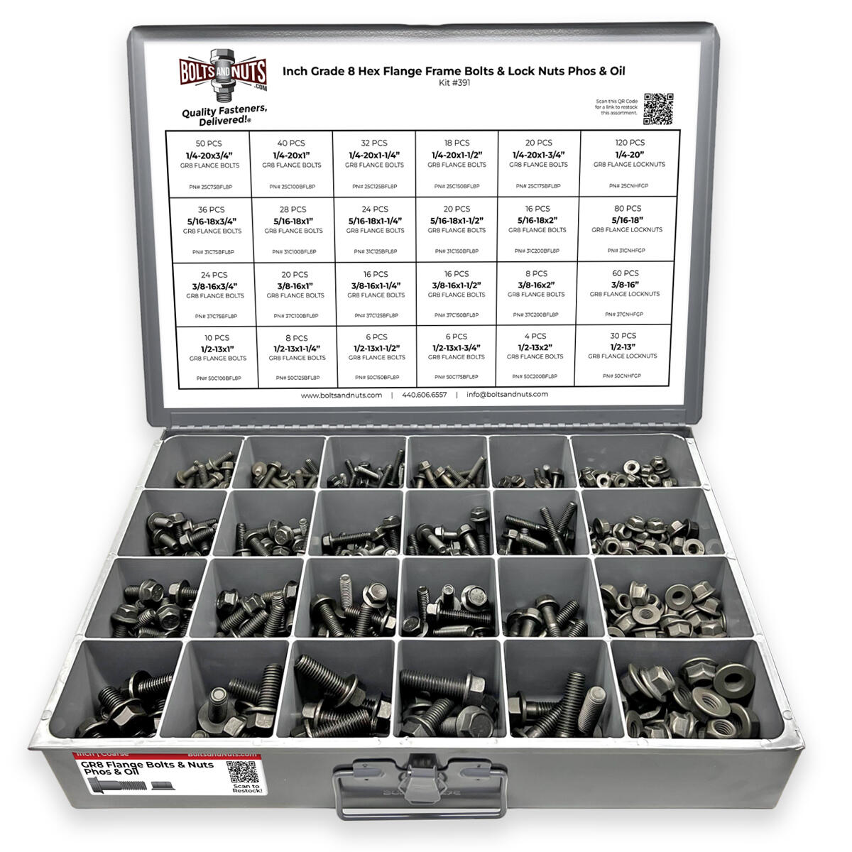 Inch Grade 8 Hex Flange Frame Bolts & Lock Nuts Phos & Oil Assortment - 693 PCS