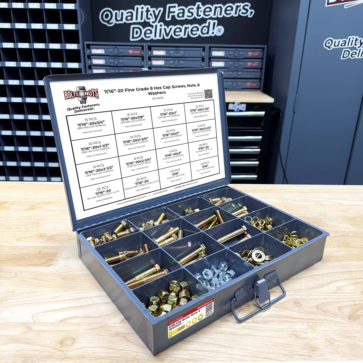 7/16"-20 Fine Grade 8 Hex Cap Screws, Nuts, & Washers - 264 PCS