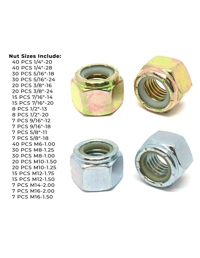 Inch & Metric Grade 8 & Class 10 Nylon Hex Lock Nuts Zinc - 444 PCS