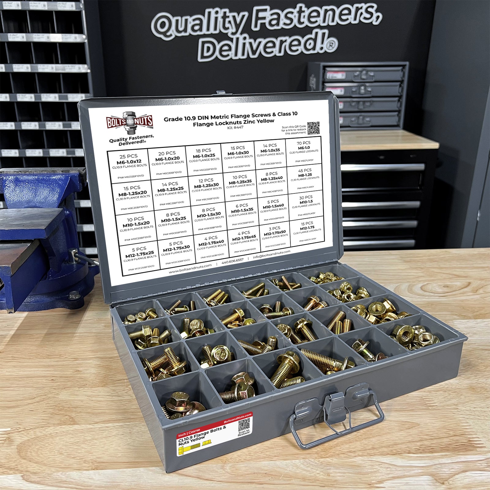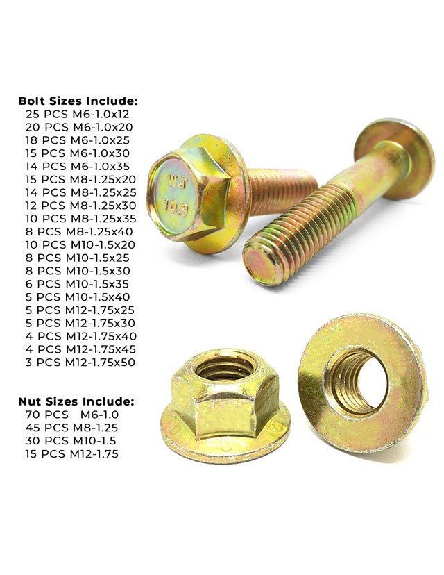 Metric Class 10.9 Hex Flange Frame Bolts & Nuts Assortment Zinc Yellow- 370 PCS
