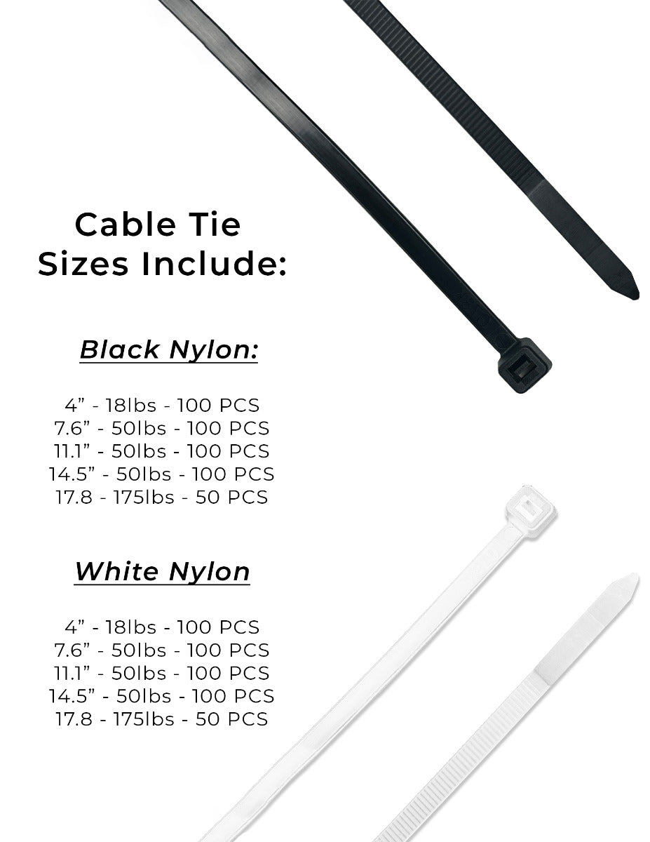 Nylon Cable Zip Ties UV Resistant Black & White Nylon - 901 PCS