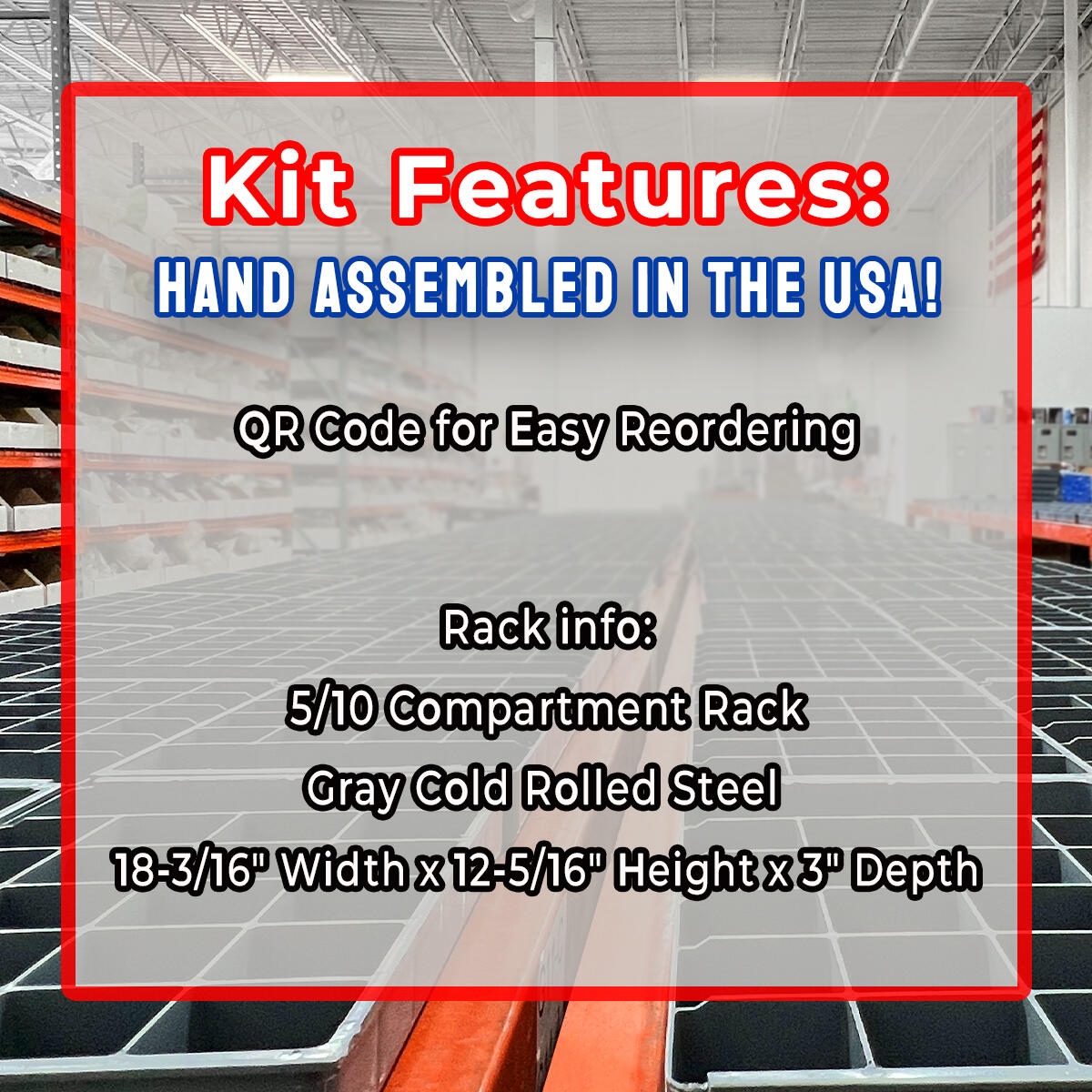 1 - Gray Cold Rolled Steel Rack, 18-3/16" Width x 12-5/16" Height x 3" Depth, 5/10 Compartment Cable Tie Rack