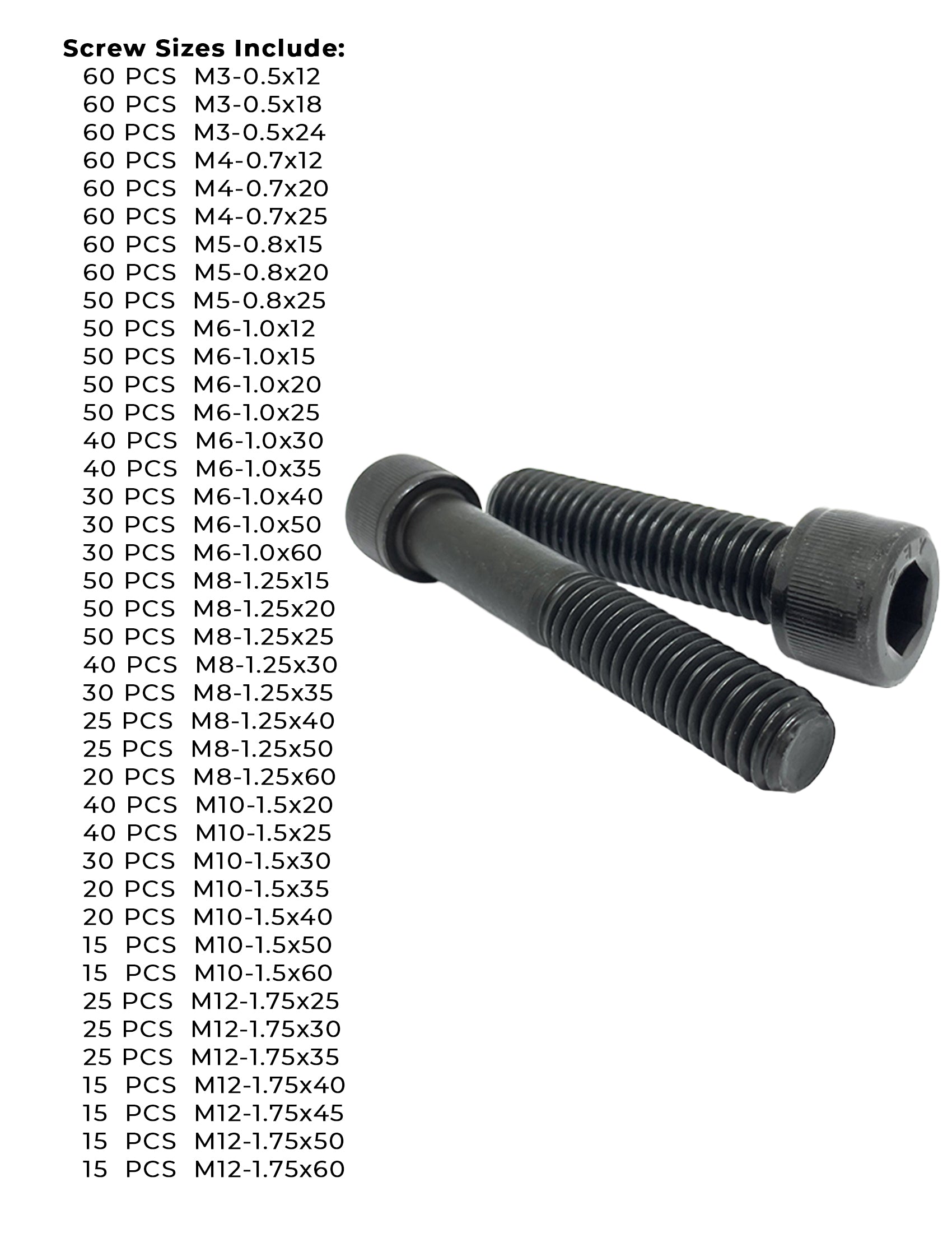 Metric Class 12.9 Socket Head Cap Screws - 1510 PCS