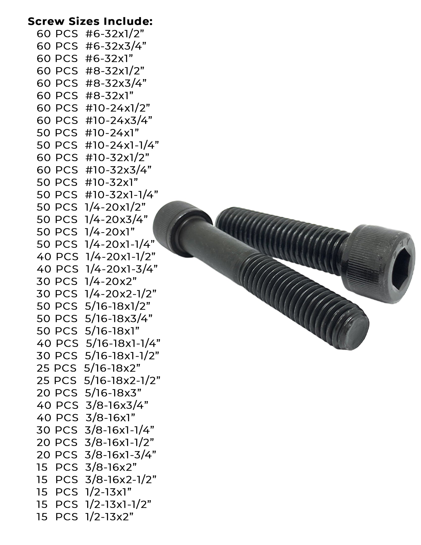 Part Number: assortment-kit-456 1655 Pieces - Coarse & Fine Thread Bolt Information: