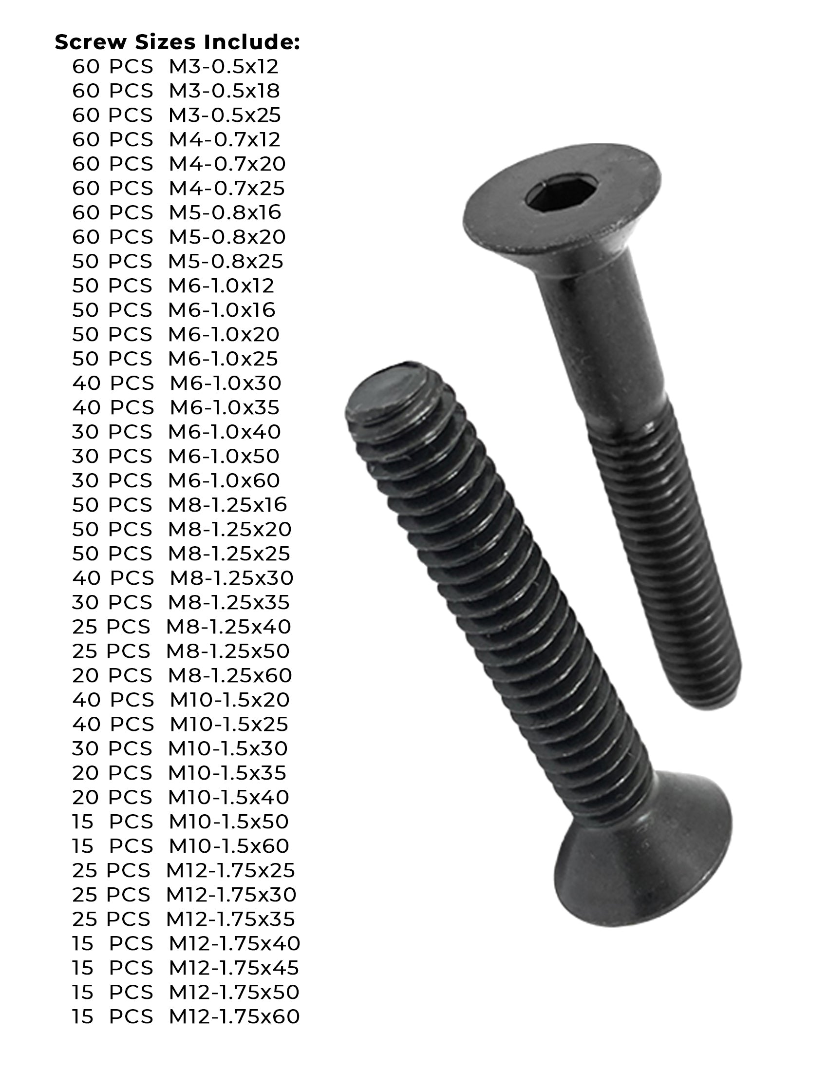Metric Class 12.9 Flat Socket Head Cap Screws - 1511 PCS