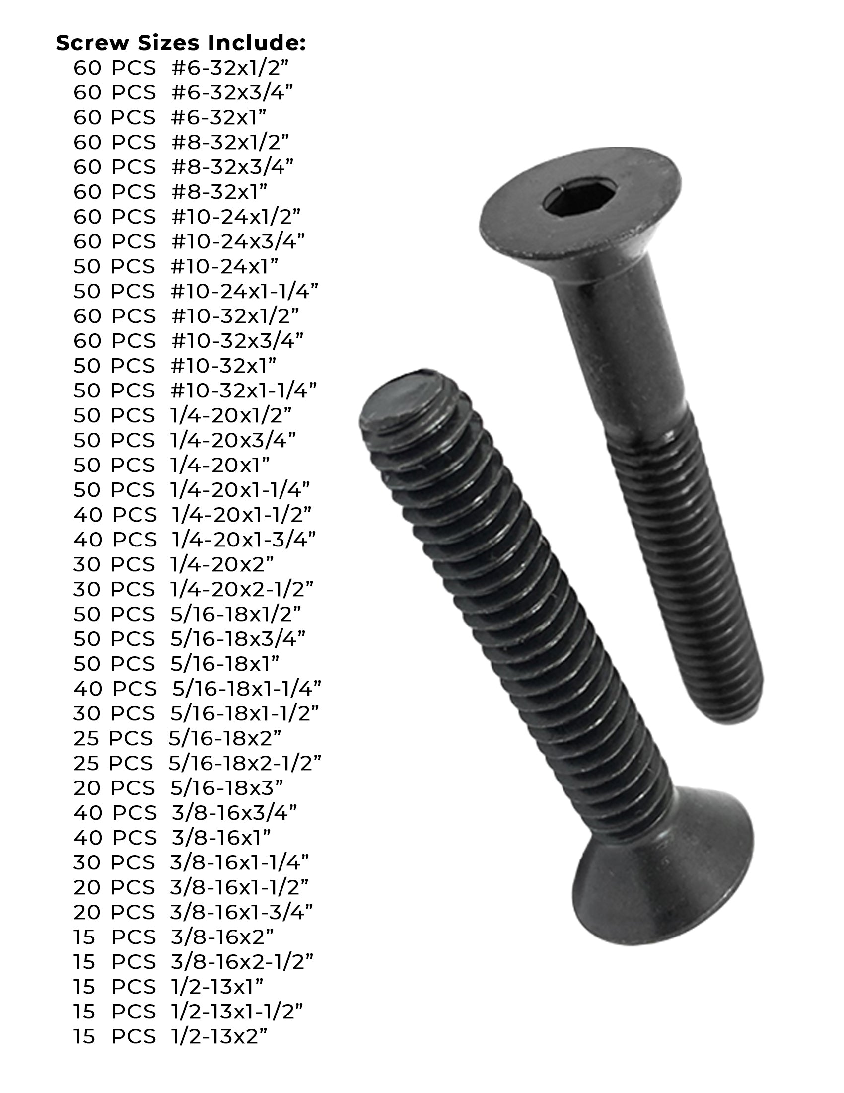 Alloy Flat Head Socket Cap Screws Black Oxide- 1656 PCS