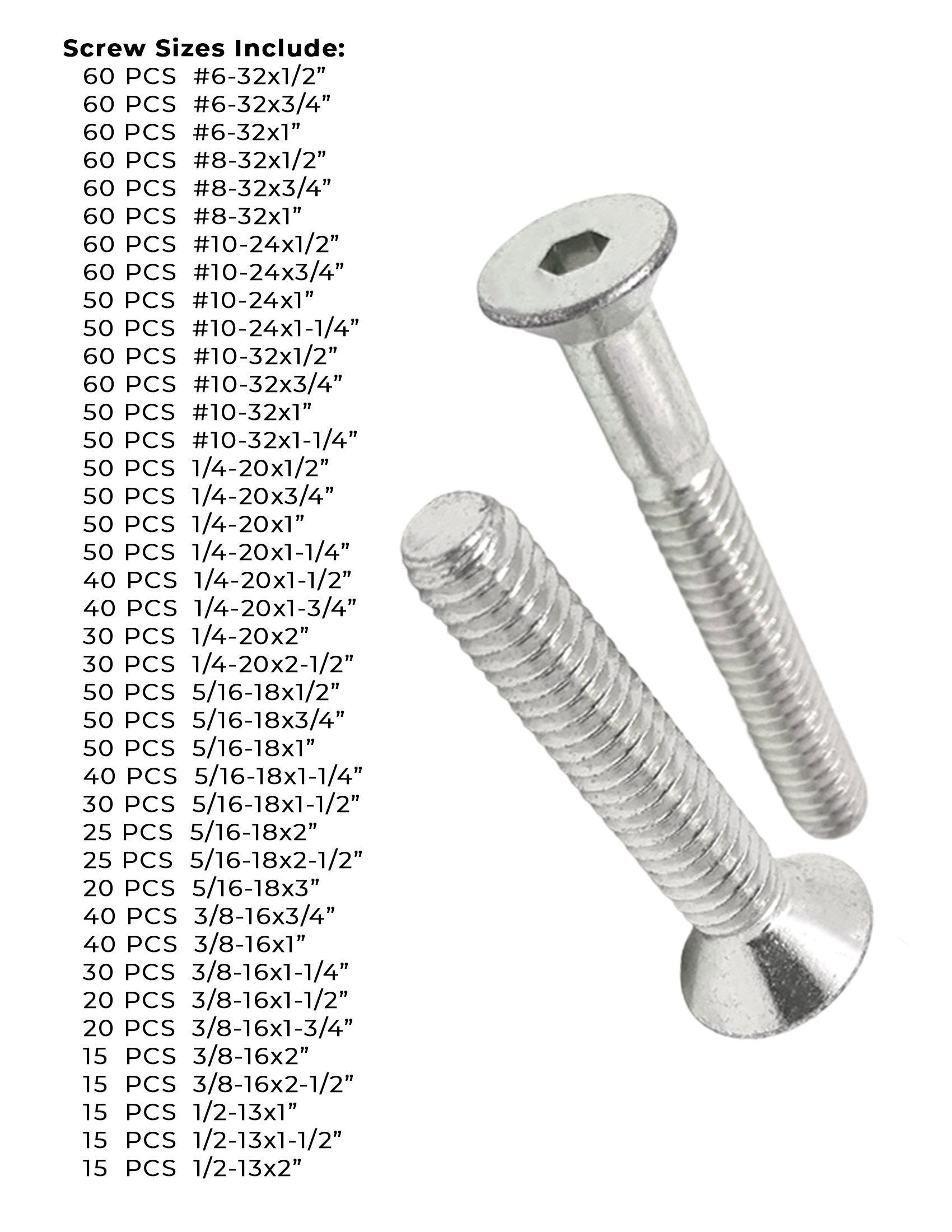 Stainless Steel Flat Head Socket Cap Screws - 1655 PCS