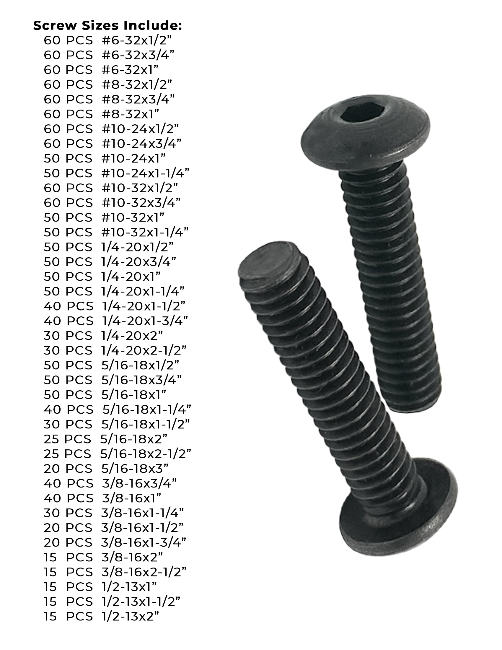 Alloy Button Socket Head Cap Screws Black Oxide- 1656 PCS