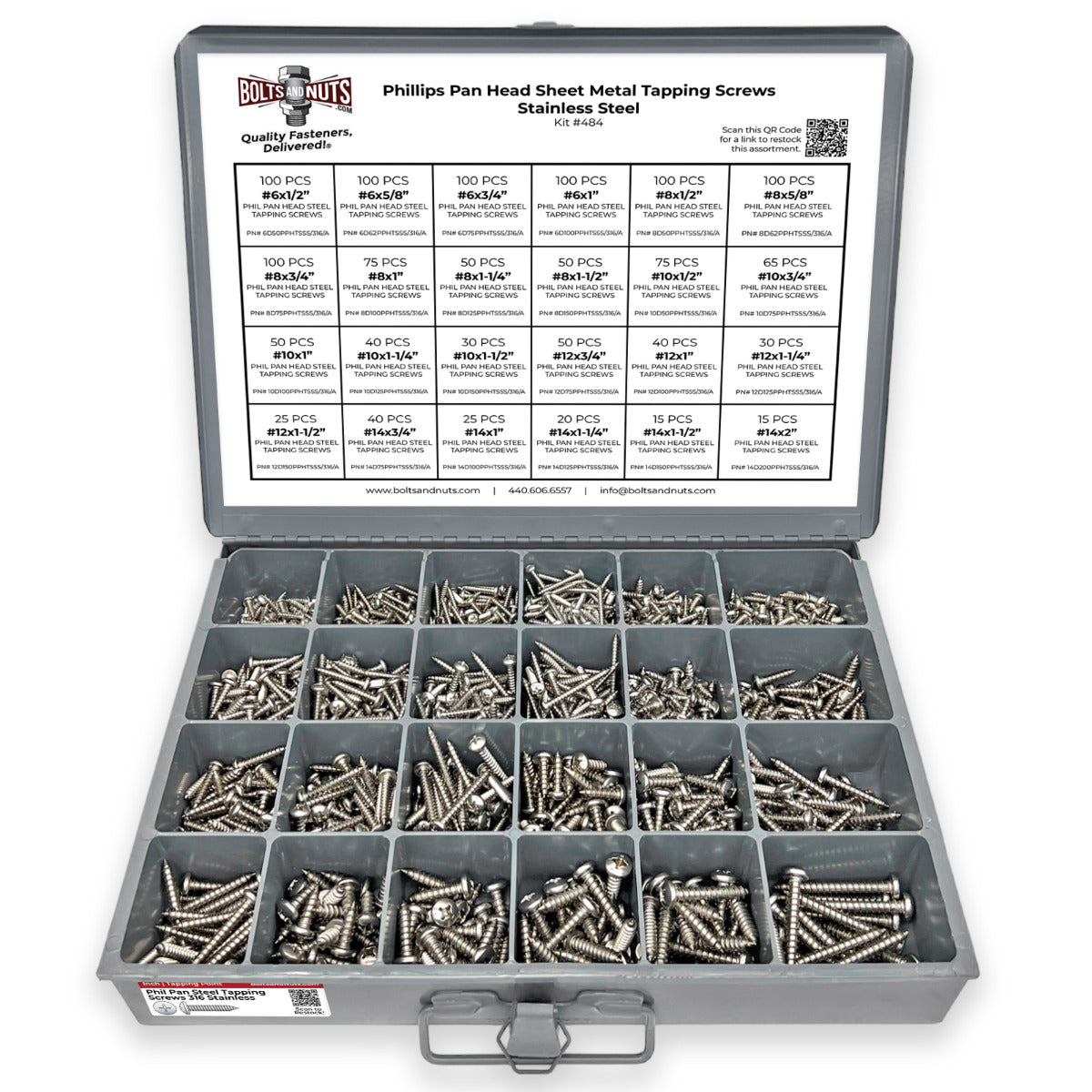 Part Number: Assortment Kit #484 1396 Pieces Screw Information: Container Information: