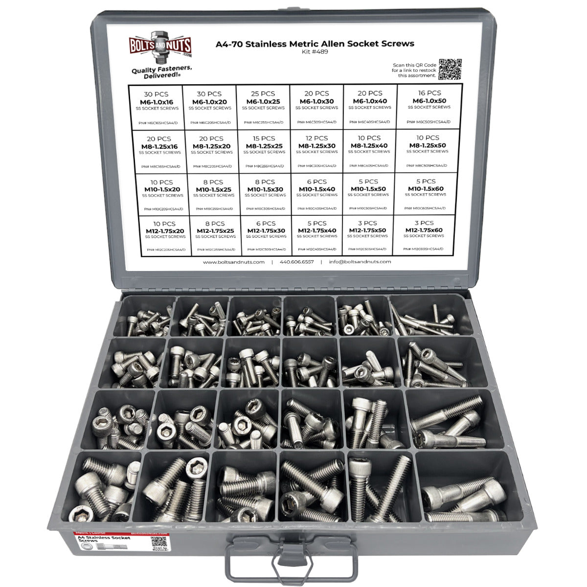 Metric A4 Stainless Steel Allen Socket Head Cap Screws Bolts Assortment - 306 PCS