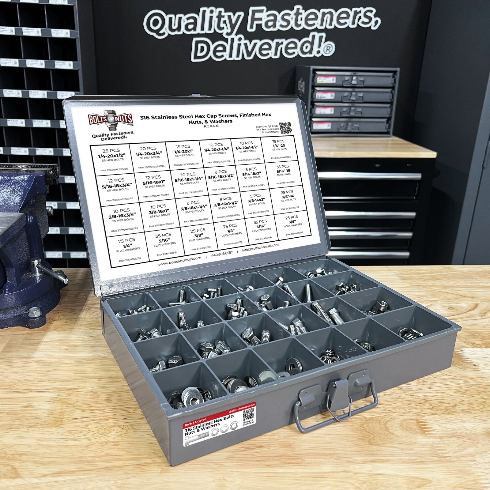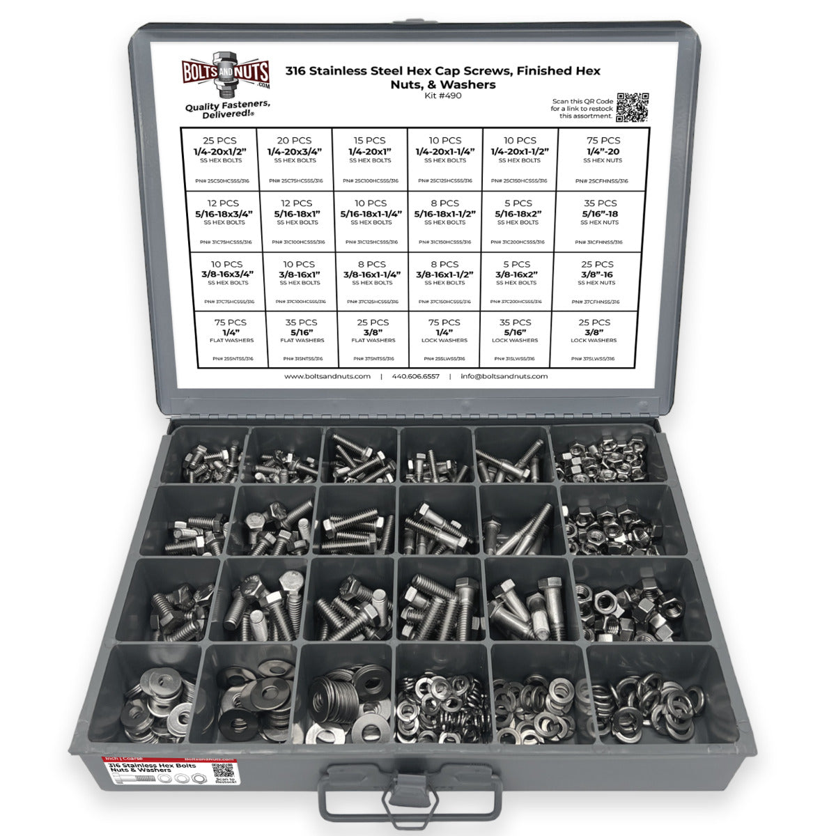 Inch 316 Stainless Hex Cap Screws, Hex Nuts, Flat & Lock Washers - 574 PCS