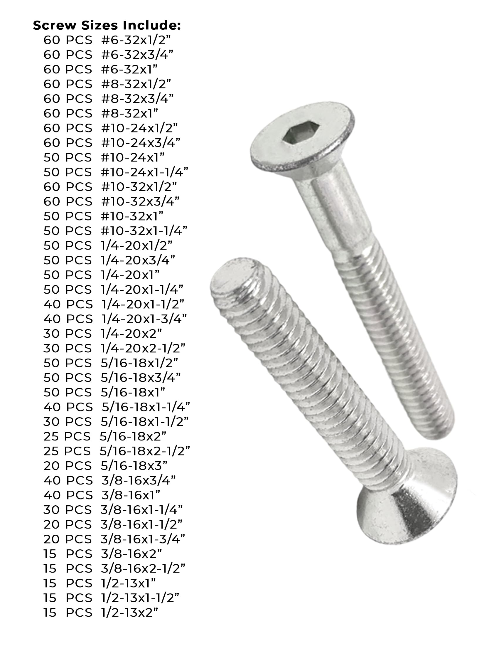 316 Stainless Steel Flat Head Socket Cap Screws - 1656 PCS