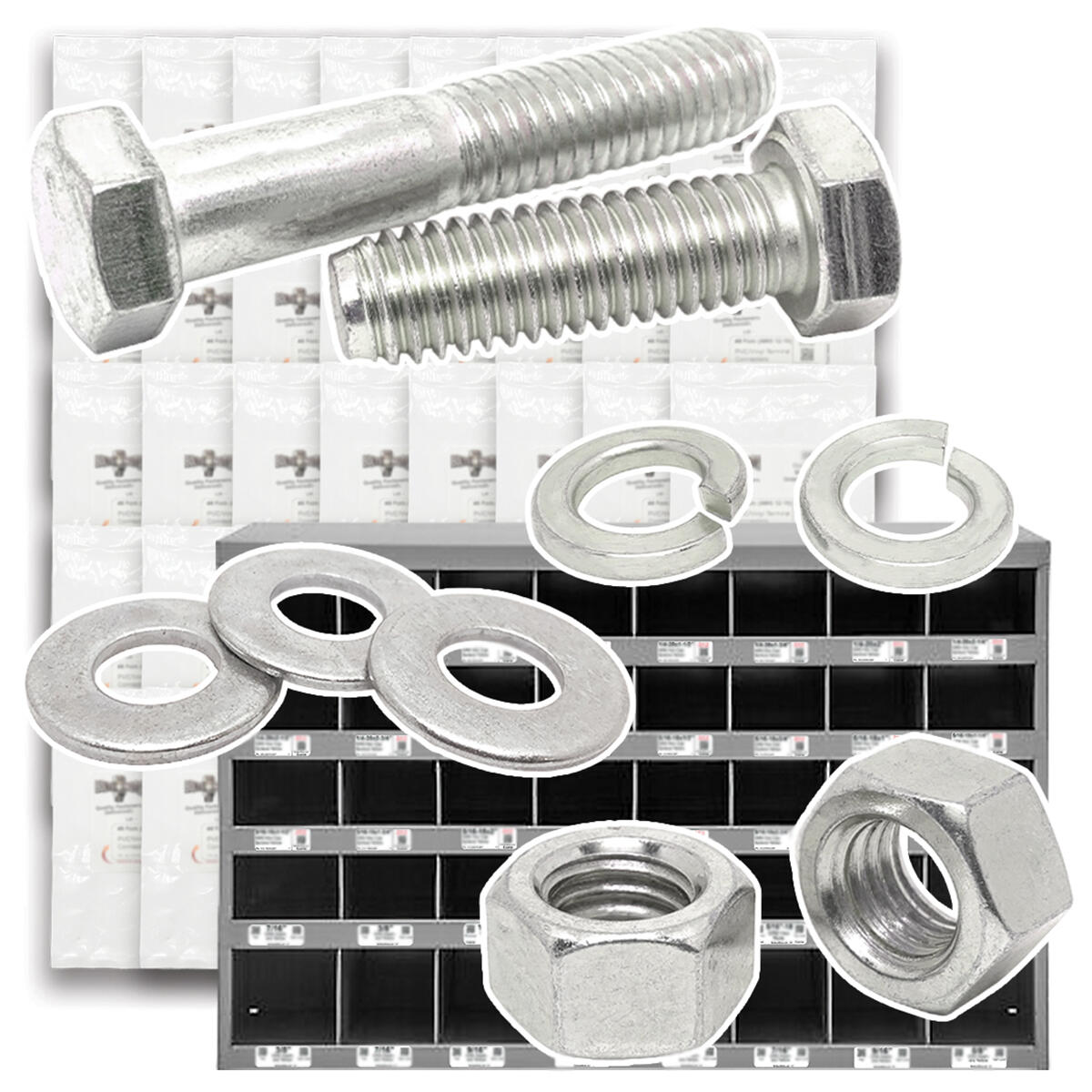 Part Number: Assortment Kit #529 2012 Pieces - Coarse Thread Bolt Information: Nut Information: Washers Information: Container Information: *Please note the bin will ship & arrive separately from the fasteners.