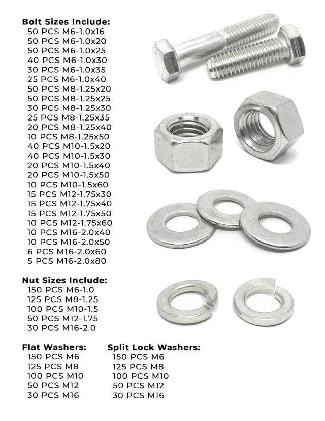 Metric Class A4 Stainless Coarse Hex Cap Screws, Hex Nuts, Flat & Lock Washers - 2011 PCS