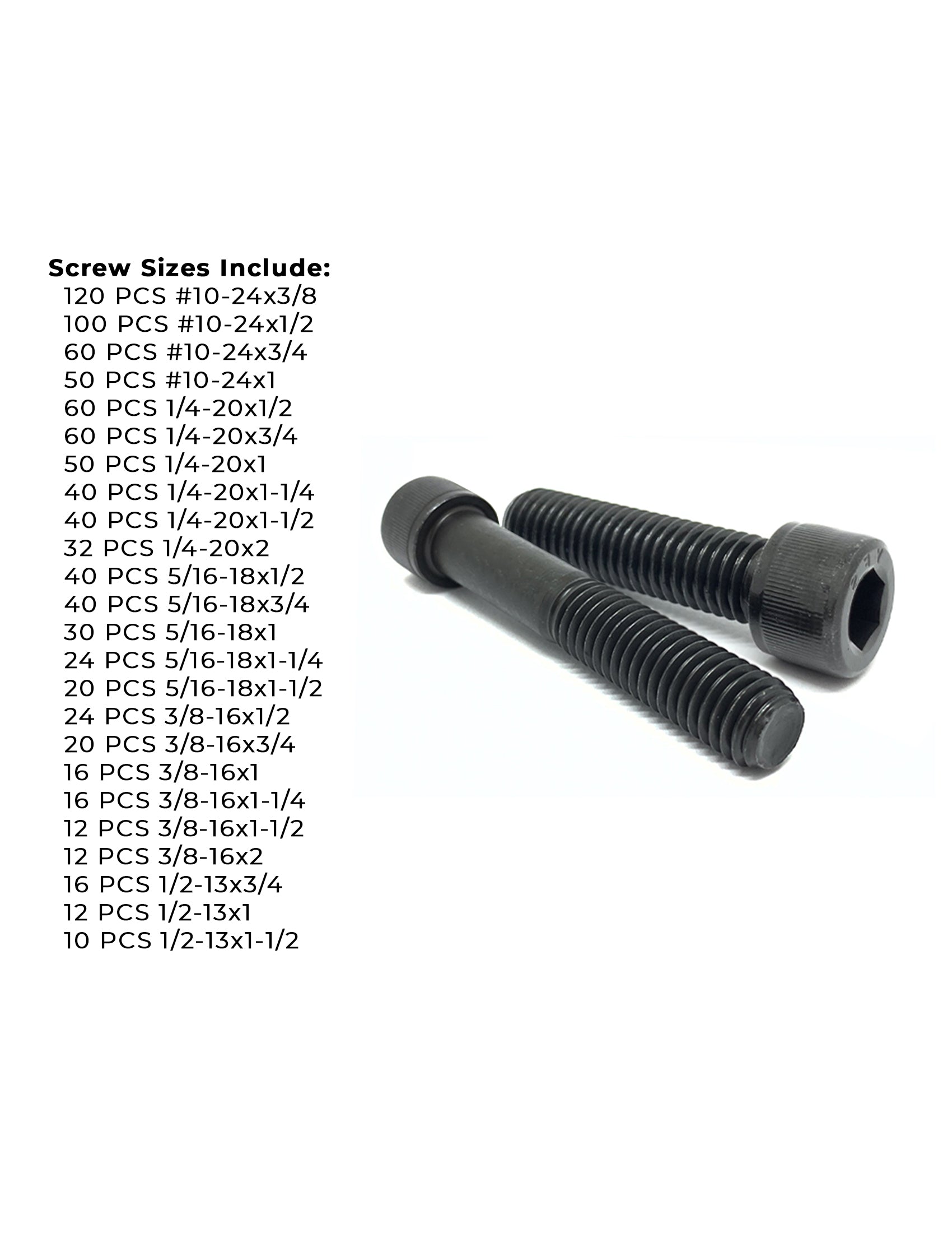 Inch Alloy Allen Socket Head Cap Screws Bolts Black Oxide Assortment - 905 PCS