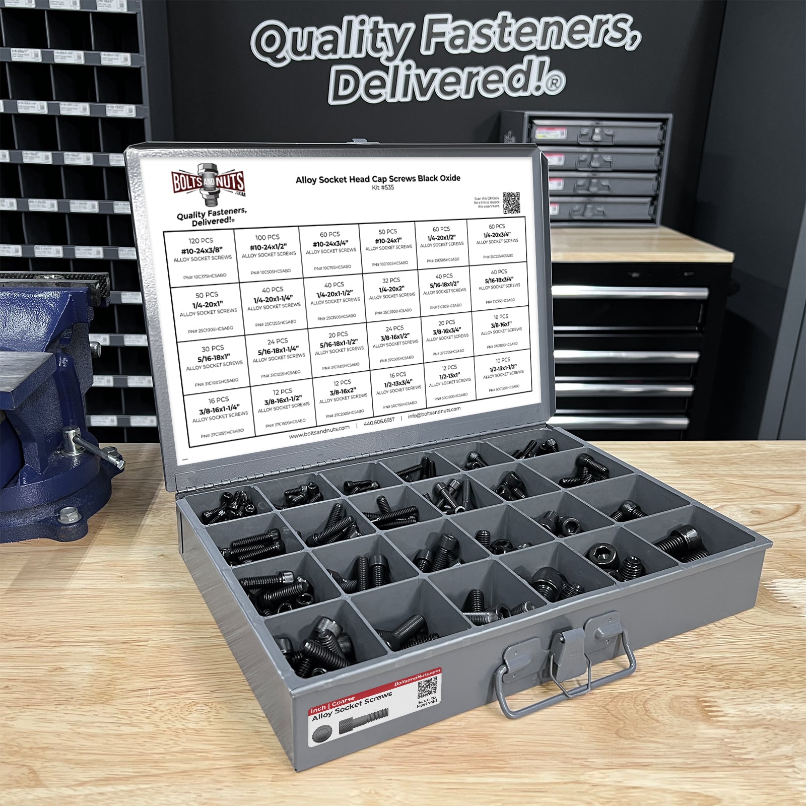 Part Number: assortment-kit-535 905 Pieces - Coarse Thread Container Information: *Please note the container will ship & arrive separately from the fasteners.