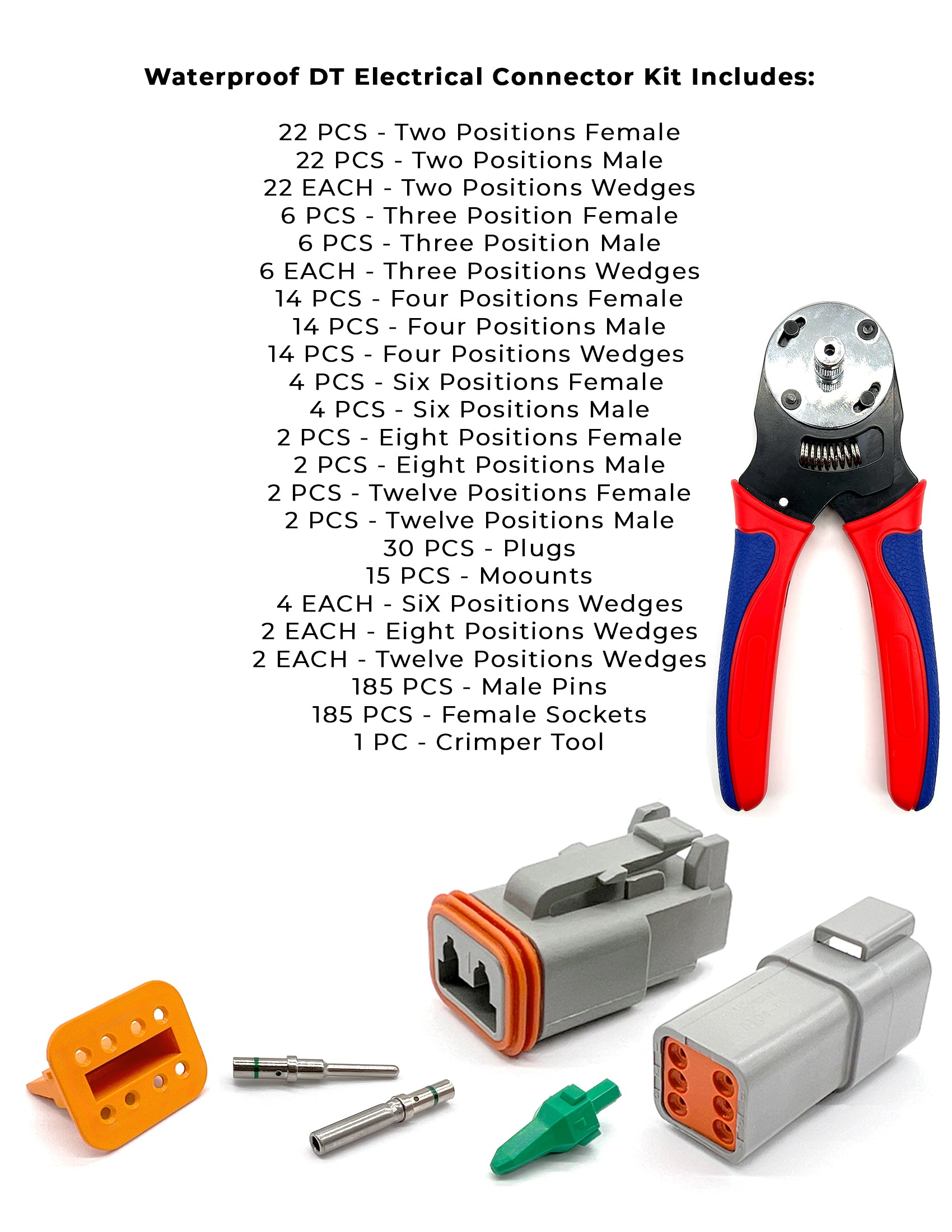 Waterproof DT Pin Electrical Connectors Assortment with Tools - 518 Pieces