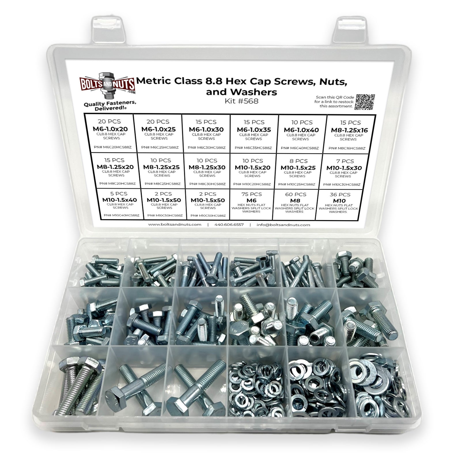 Metric Class 8.8 Hex Cap Screws, Hex Nuts, Flat & Lock Washers - 341 PCS