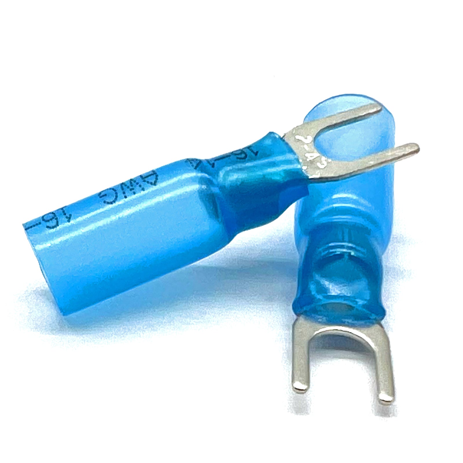 Blue Heat Shrink Marine Grade #10 U-Type Fork Connectors, AWG 16-14
