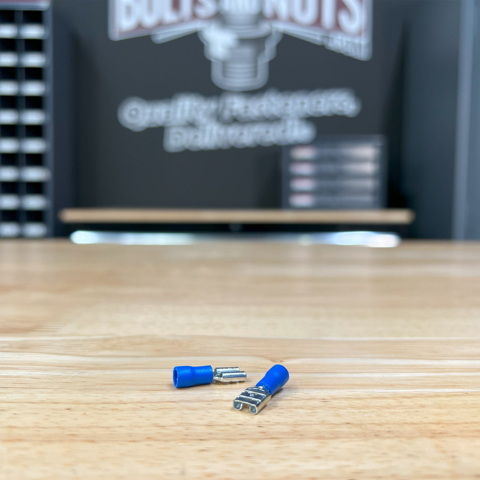 Blue PVC/Vinyl Female Spade Crimp Connector, AWG 16-14