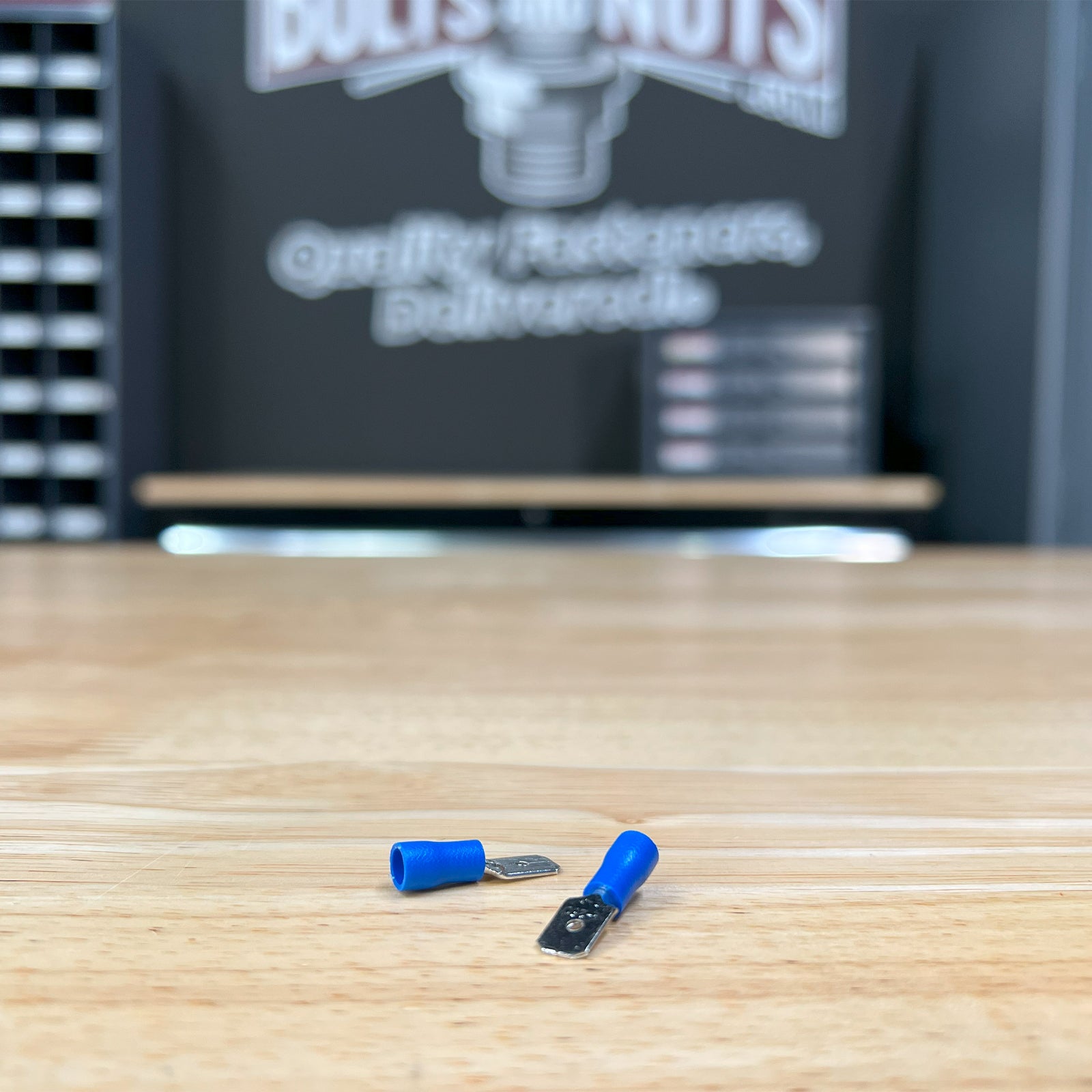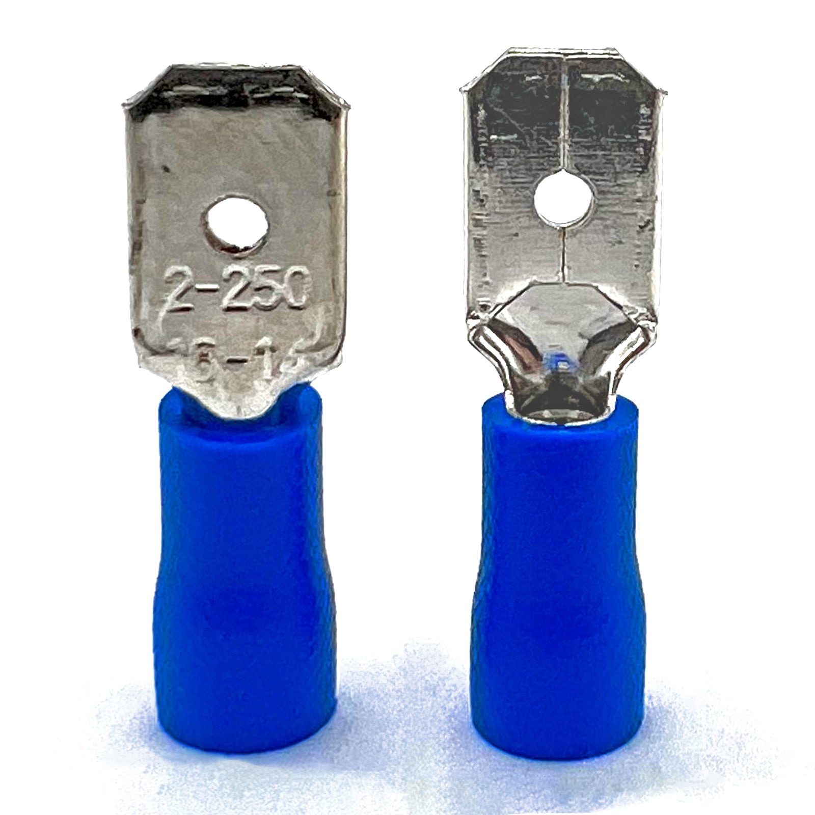 Blue PVC/Vinyl Male Spade Crimp Connector, AWG 16-14