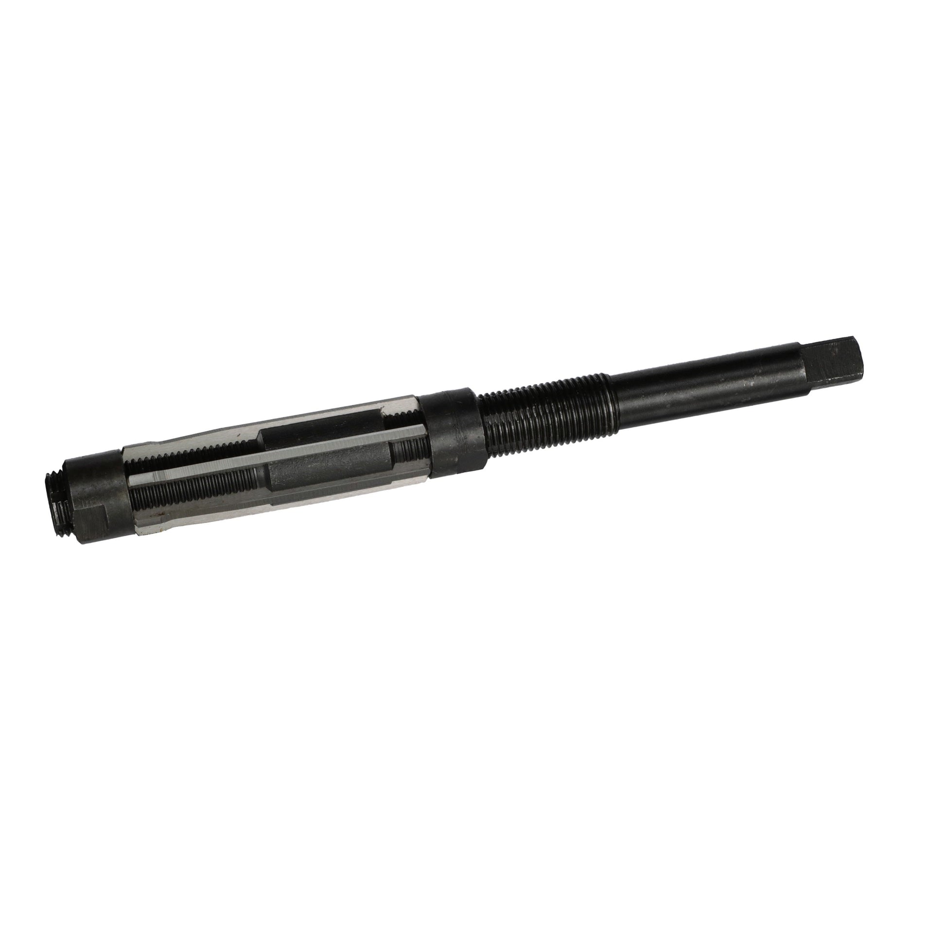 Adjustable reamers are designed to ream odd sized holes They are made of high speed steel for general purpose applications and have a square shank for use in a wrench Adjustable reamers are held in place by two locking nuts and adjustment is made by loosening one nut and tighting the other Each reamer expands to the next size.