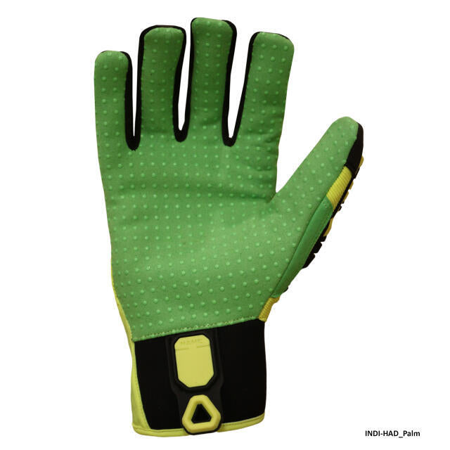 Impact Gloves, High Visibility Yellow/Green/Black, Palm Material Synthetic Leather, Palm Construction Antislip PVC Dots, Full, Back Material Nylon, Spandex, Knuckle Padding Material TPR, Cuff Gauntlet, Slip On Closure Type, Standards EN388, Right/Left Hand.