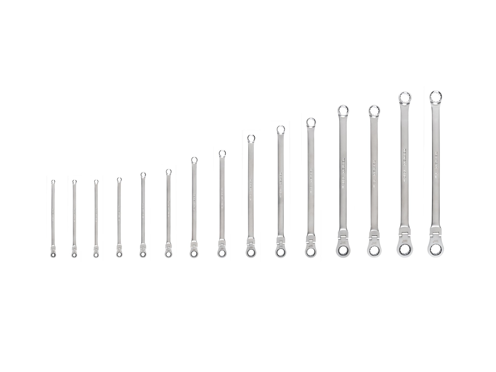 Long Fixed/Flex Head 12-Point Ratcheting Box End Wrench Set, 15-Piece (1/4-1 in.)