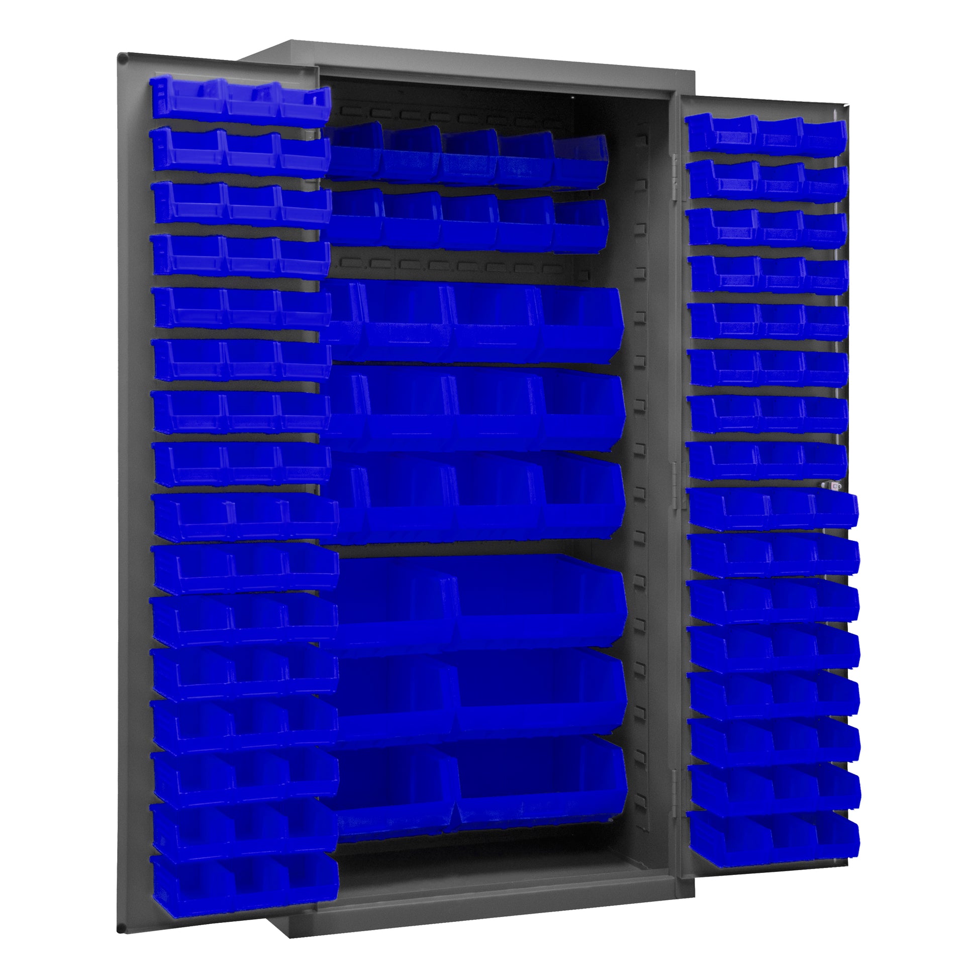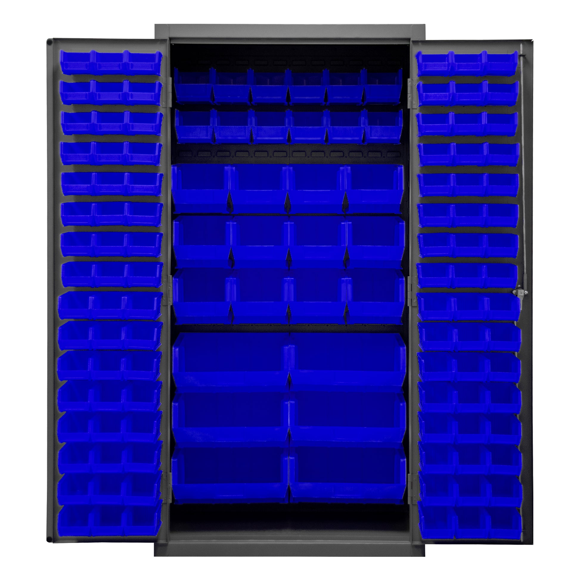 Metal Locking Storage Cabinet with 126 Blue Hook-On-Bins
