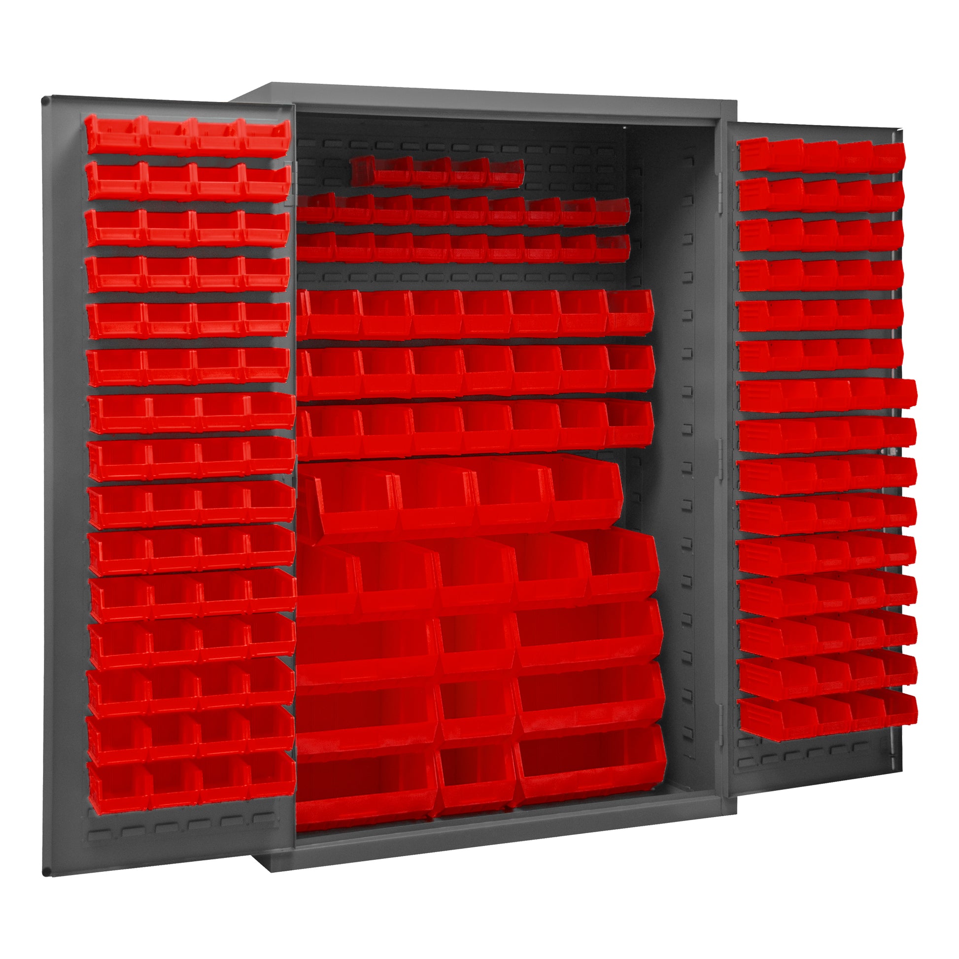 Metal Locking Storage Cabinet with 186 Red Hook-On-Bins