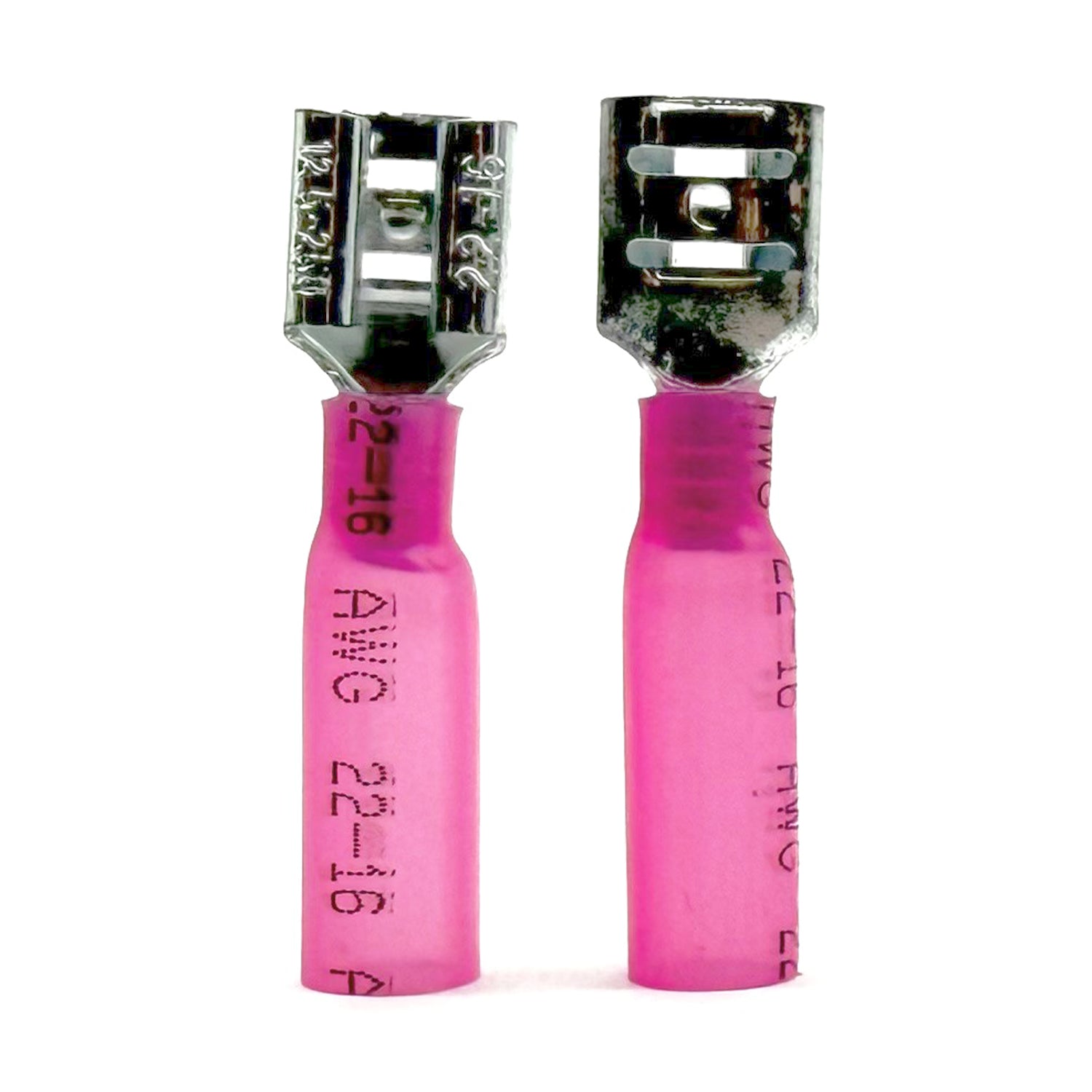 Red Heat Shrink Female Spade Connectors, AWG 22-16