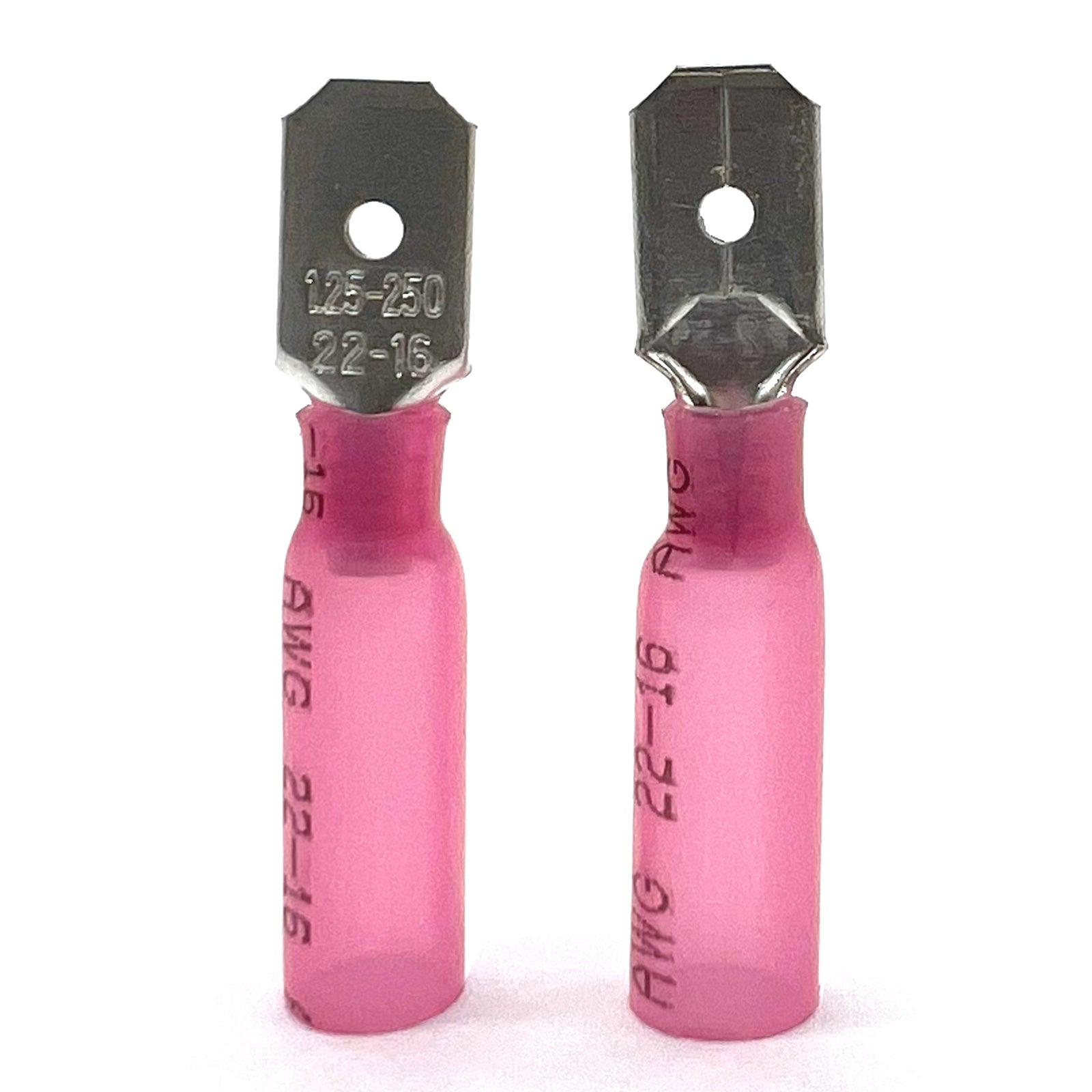 Red Heat Shrink Marine Grade Male Spade Connectors, AWG 22-16