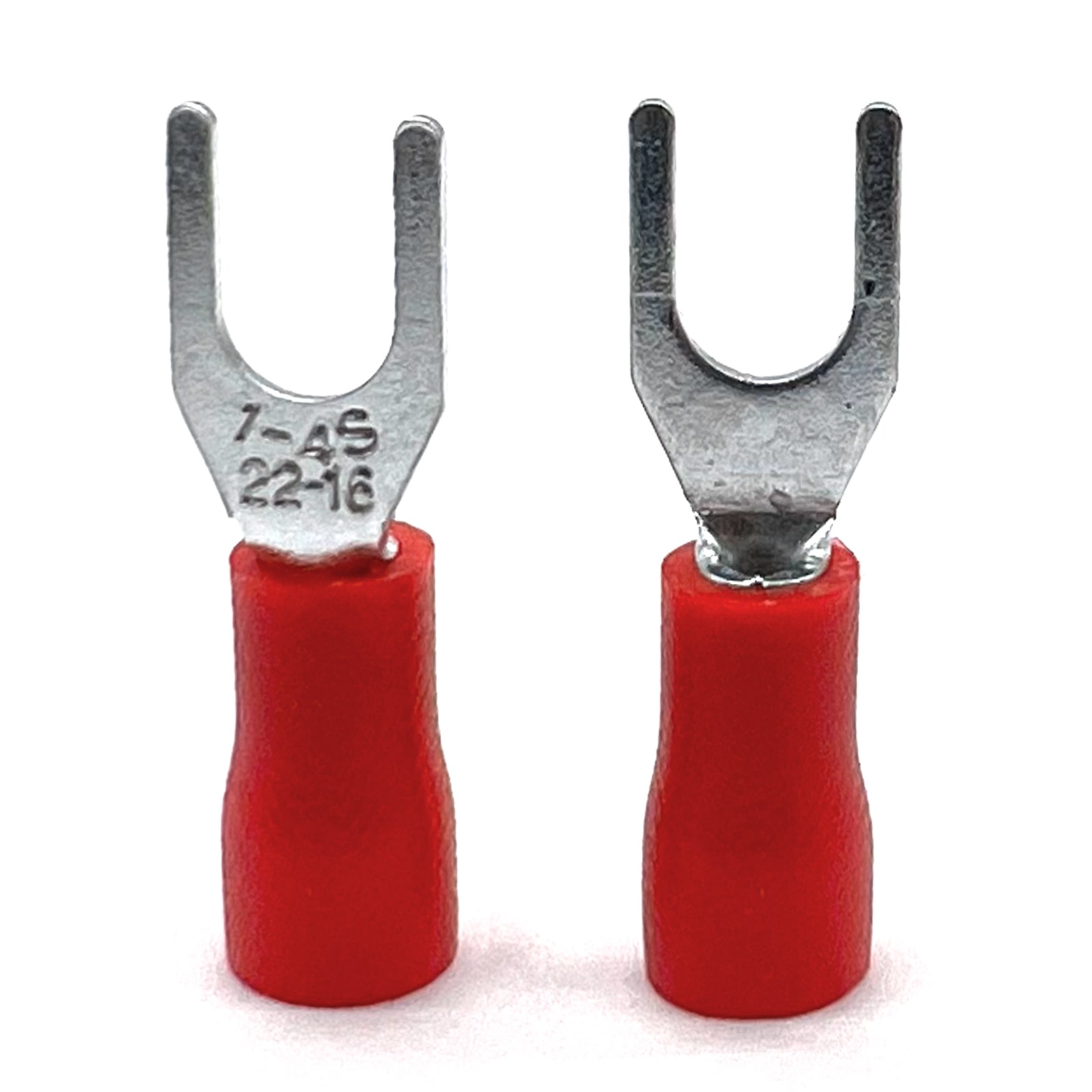 Red PVC/Vinyl #10 Fork Crimp Connector, AWG 22-16