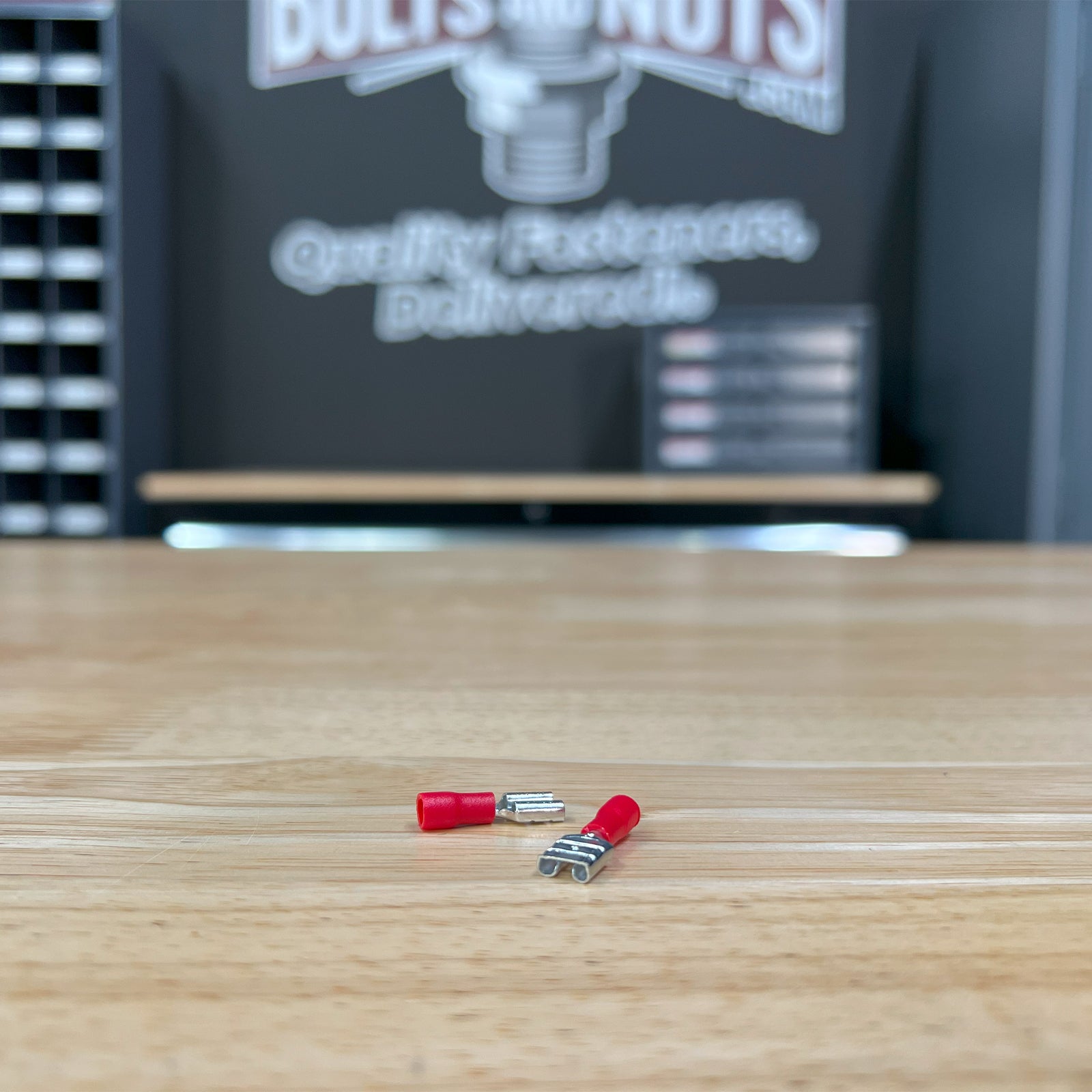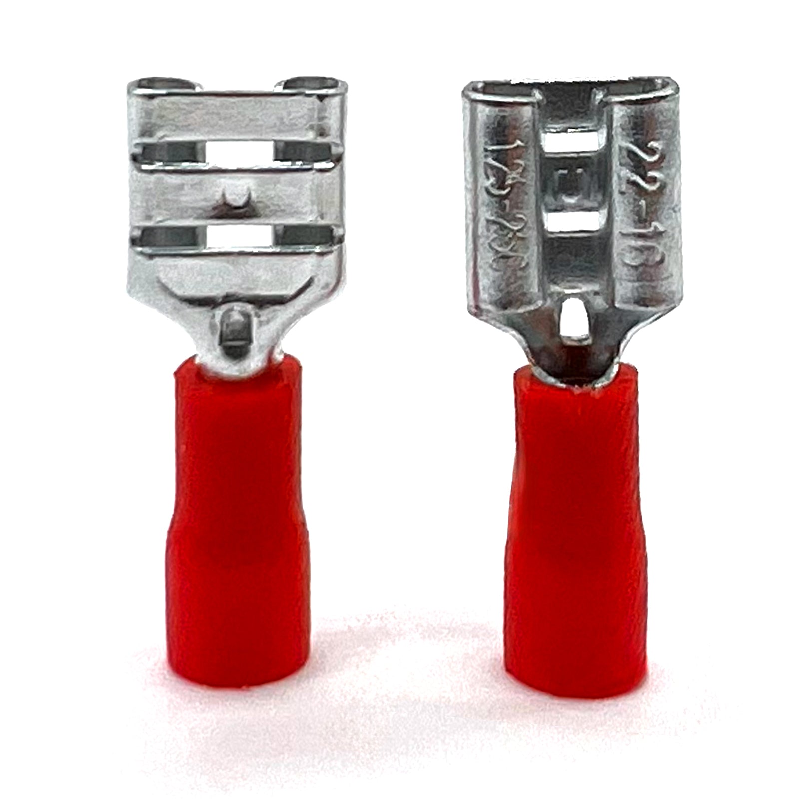 Red PVC/Vinyl Female Spade Crimp Connector, AWG 22-16