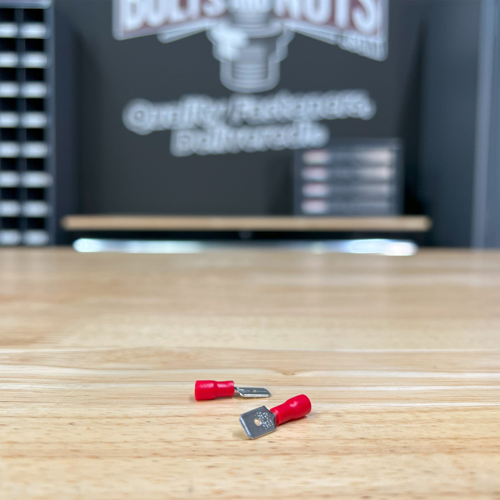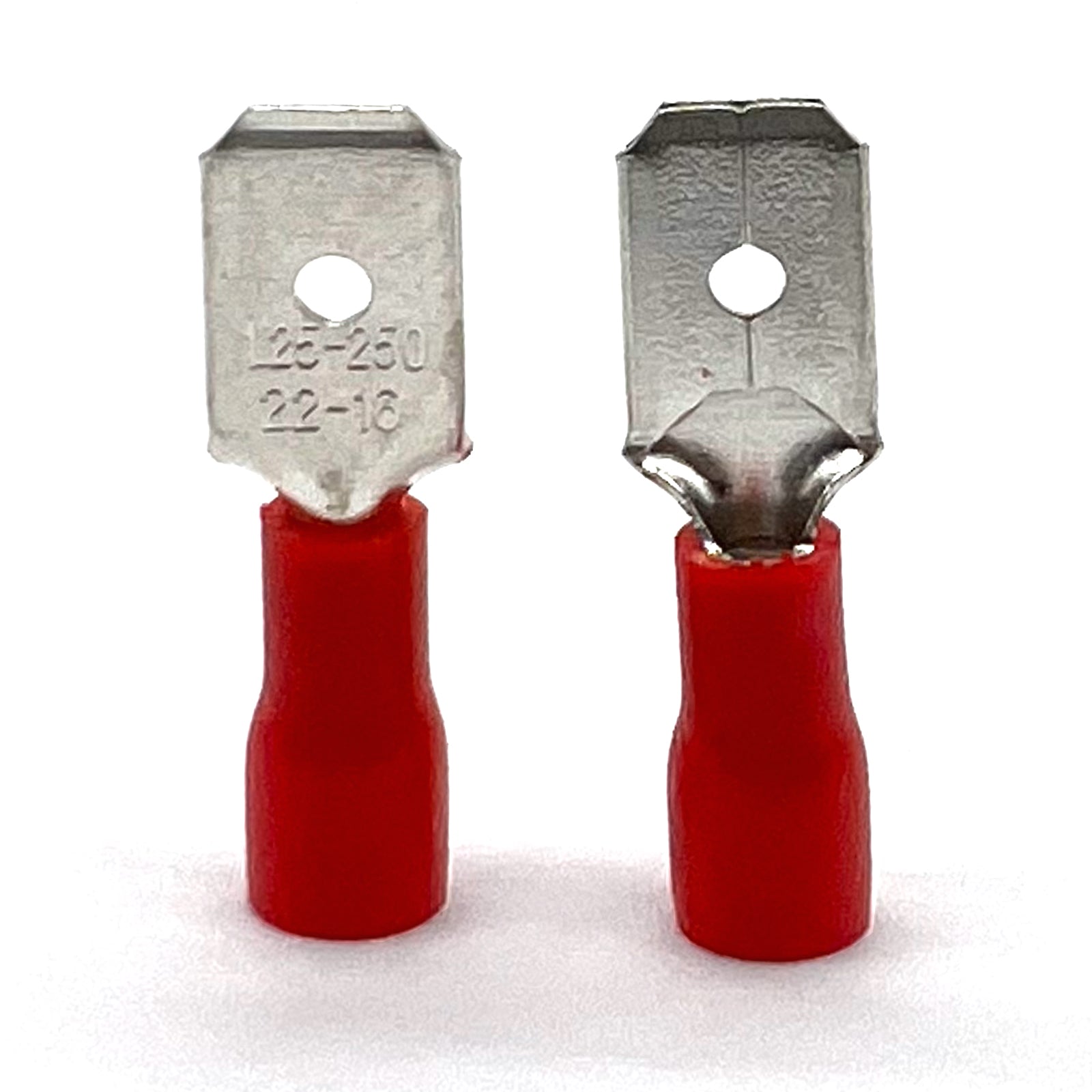 Red PVC/Vinyl Male Spade Crimp Connector, AWG 22-16