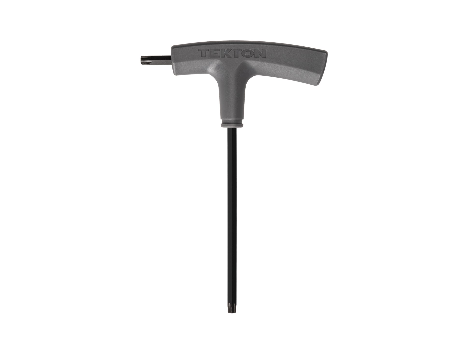 Tekton T-handle keys have two ends—both a star long arm for spinning out fasteners, as well as a short, star side drive for breaking loose fasteners. The large, contoured handle is designed to comfortably fit your in your hand as you apply torque from various positions. The steel key is made from 8660 nickel chromium molybdenum steel and held to high tolerance standards so you can count on a proper, snug fit every time.